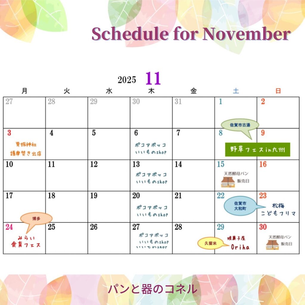 11月は、イベント出店や子ども行事等があり、脊振の古民家(パン&陶芸工房)での自家製天然酵母パンの販売日は、15日(土)、30日(日)の2日間になります。